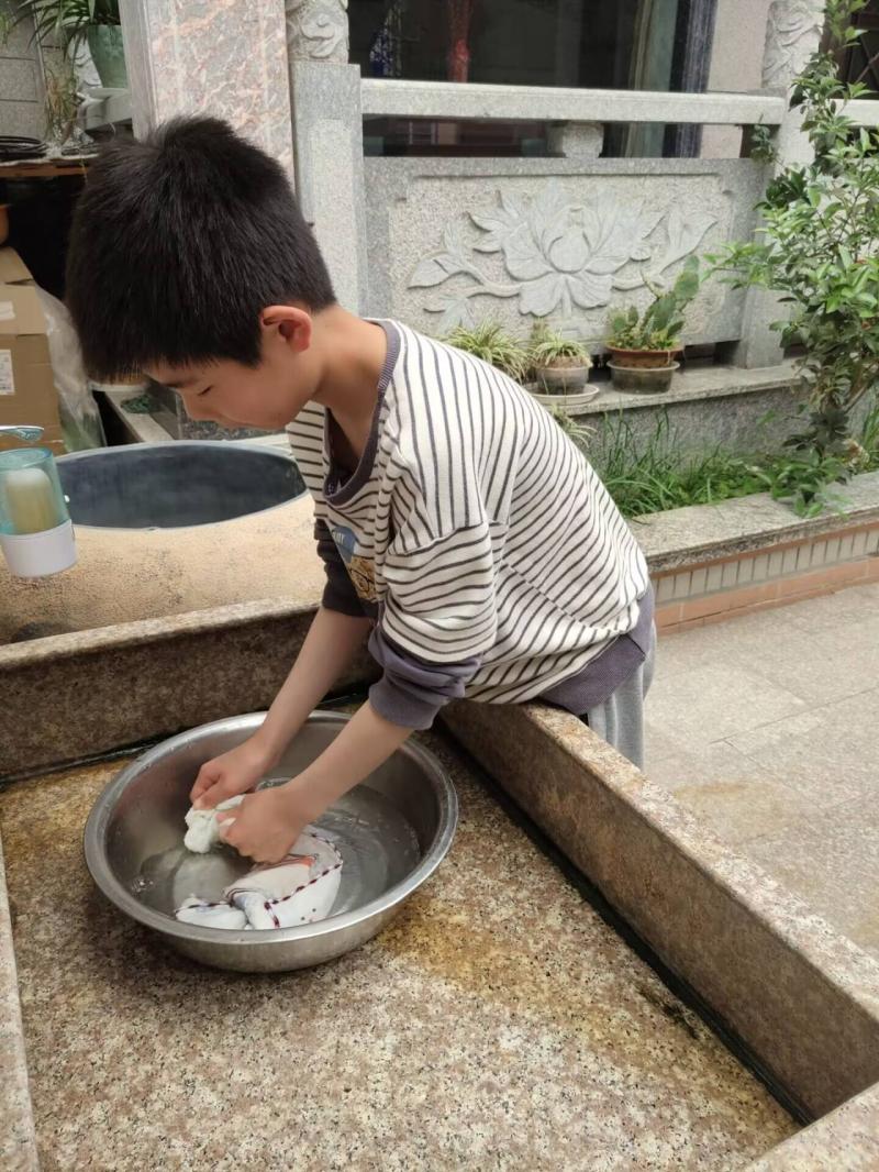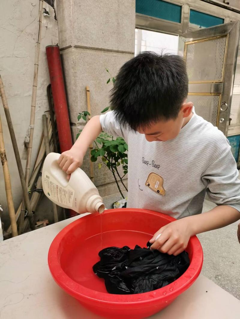 五年级的同学们用灵巧的双手揉、搓、刷,将一个个污渍洗去,在洗衣服的过程中体会到劳动的辛苦,在体验中有成长……