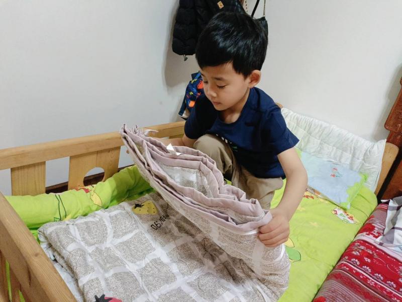 小手挥舞,擦出整洁家园。一年级的同学们在家开启“家务小达人”模式。叠放衣服、扫地拖地、整理书柜……不一会儿就把自己的房间打理得井井有条。瞧!孩子们灿烂的笑脸盈满了劳有所获的喜悦与骄傲。