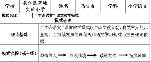 新一轮课程改革已正式启动,我校积极贯彻上级主管部门文件精神,结合学校实际,积极推进教学改革,探求课堂教学新模式。围绕新课程标准,从为学生终身发展奠基的高度出发,以“目标性、针对性、高效率”为特点,以“变备教材、备教法为备学生、备学法,使学生动起来,课堂活起来,效果好起来,师生负担减下来”为目的,构建“自学、展示、拓展、训练”四大模块的生态课堂。