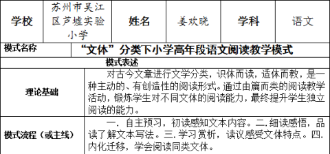 1.“文体”分类下小学-高年段语文阅读教学模式