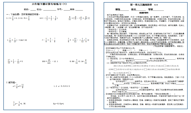 一张微单显设计。设计微型作业单是我校在作业设计上的一次尝试,语文以单元为单位设计主题阅读单,选取与本单元主题相近的文章,或同题材,或同体裁,或同作者,根据本单元的语文要素设计巩固性练习,提升学生的阅读能力。数学以数学能力设计专项训练作业单,主要针对教学中发现的学生学习的薄弱点、需要突破的重难点,设计计算专项、解决问题的策略专项、数与形等专项练习。英语也是根据教学设计词汇、词组、语法等专项作业单。这些微型作业单是教师们改进教学,减少作业量,精选精练的体现,更是教学智慧的体现。