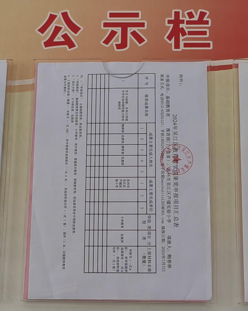 关于芦墟实验小学申报2024年吴江区教育教学成果奖的公示