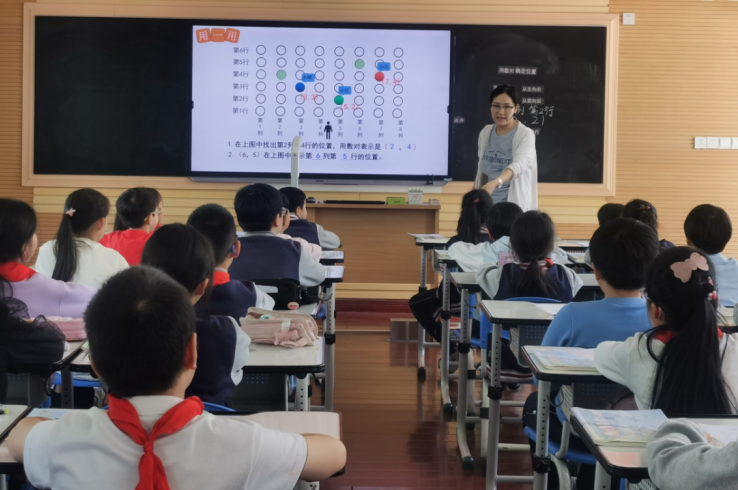 赵雯君老师执教四年级下册《确定位置》,赵老师以游戏引入,针对如何确定小仓鼠的位置引发学生的思考,利用课件的直观演示,让学生初步感知一维与二维的位置确定的特点,在一个个游戏互动中感悟用数对确定位置的方法。
