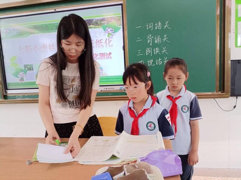 为聚焦核心素养,促进学生的全面发展,改善学生评价生态,芦墟实验小学一、二年级老师围绕“七彩小虎娃 玩转无纸化”这一主题,开展了无纸化测评活动。活动将学科知识融入趣味闯关游戏中,语文学科围绕词语、背诵、朗读、口语四个方面设置过关内容,主要测评学生的拼音学习、识字组词和积累背诵的语文综合能力。数学学科则围绕计算、操作、实践运用设计闯关内容。通过一系列丰富多彩的综合性闯关项目,让孩子们在玩中学、做中思,于闯关过程中激发潜能、迸发创意,实现寓教于乐的教育目标。